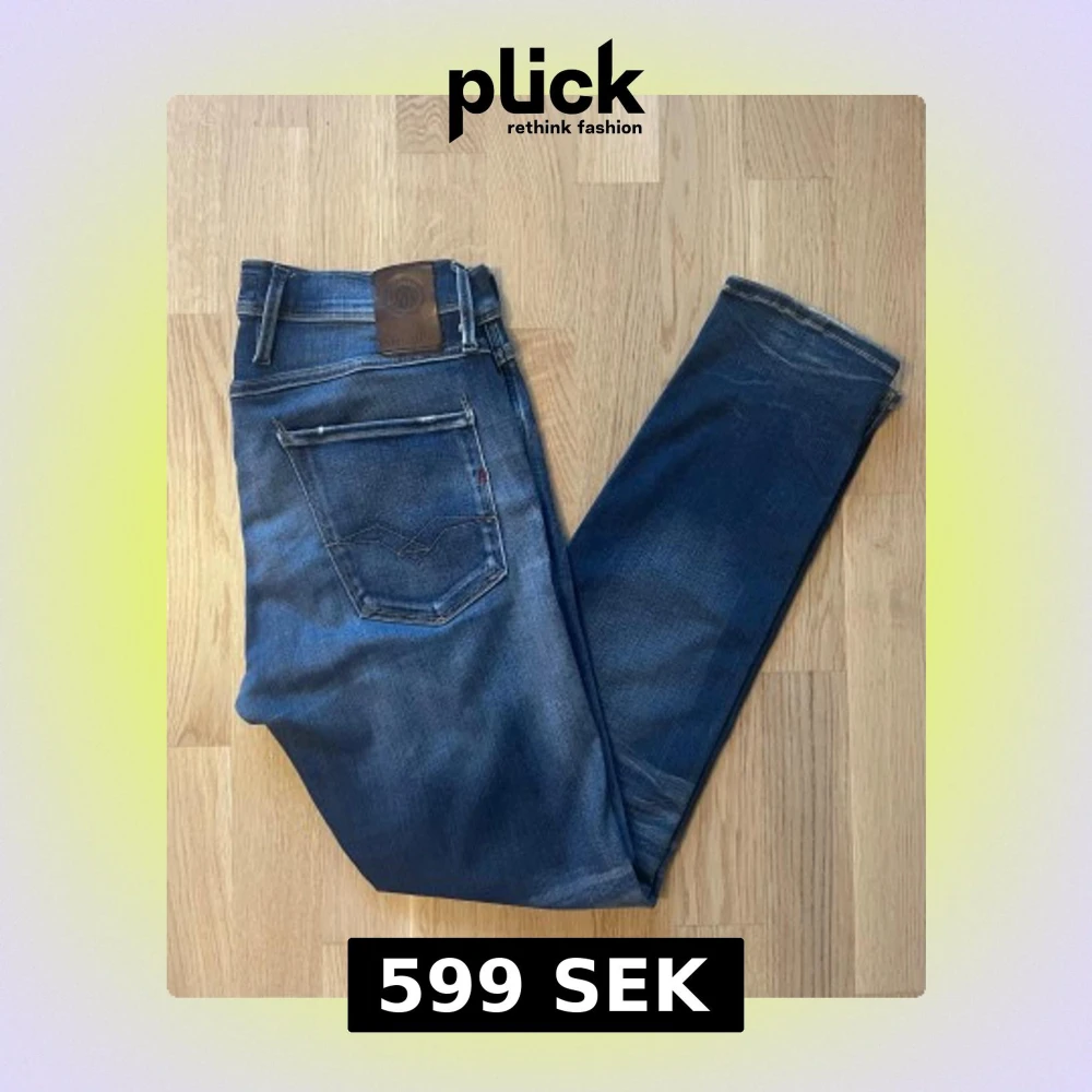 Jag säljer dom här riktigt feta Replay Anbass jeansen som är i storlek W30 L30. De är inte använda mycket alls och är i fint skick. De har snygga slitningar vid fickorna vilket är en del av designen. Tveka inte att höra av er! Mått: Längd=102cm. Midja=40cm