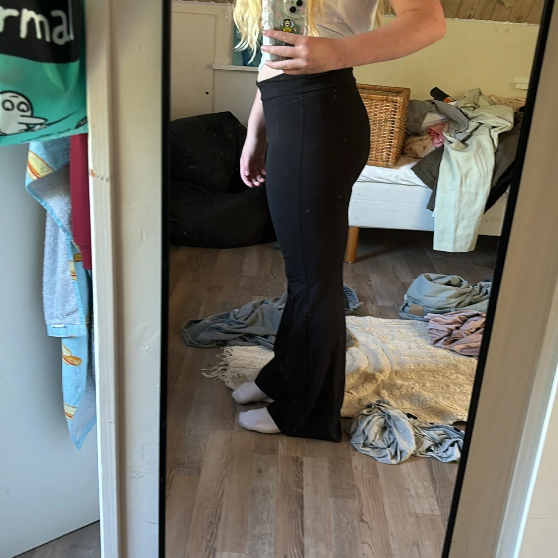 Riktigt snygga och billiga svarta flare byxor som aldrig är använda❤️