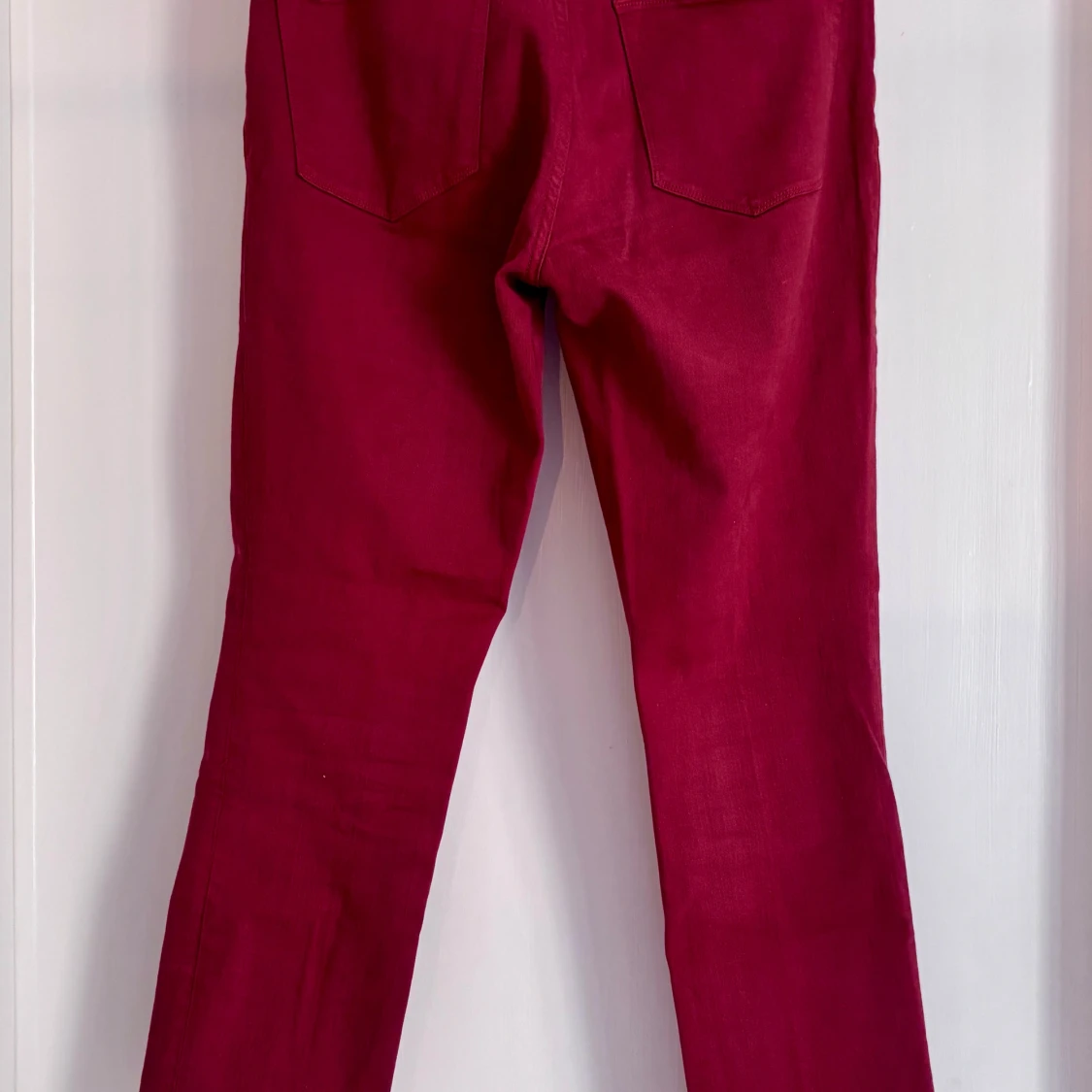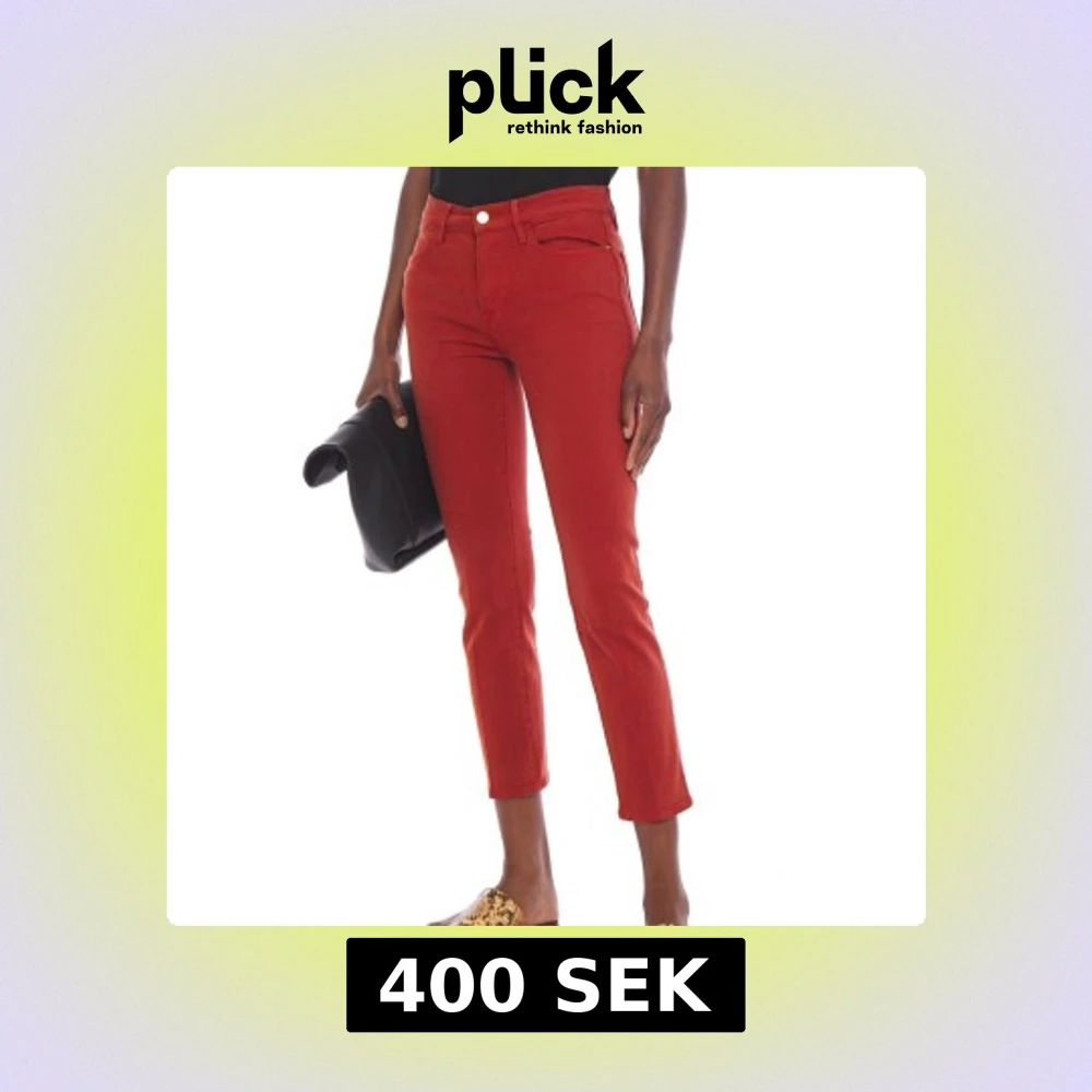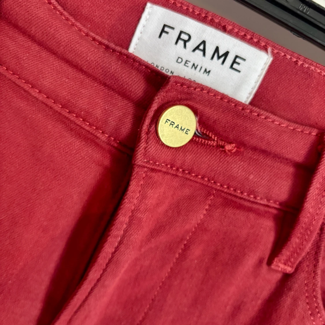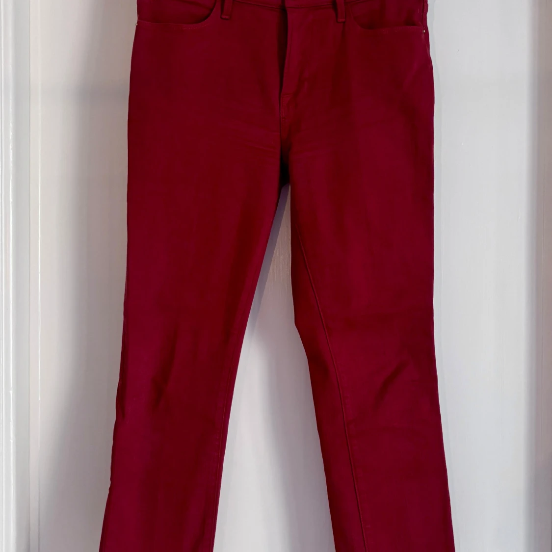 Snygga röda jeansbyxor från Frame Denim i klassisk femficksmodell. Byxorna har raka ben och normal passform, tillverkade i mjukt bomullstyg med stretch. Perfekta för dig som vill sticka ut med färg och ändå ha en clean look.