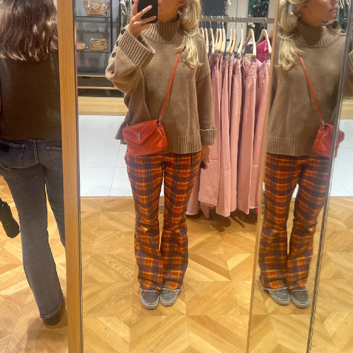 Rutiga bootcut/raka jeans från The Ragged Priest. Köpta för 2 år sen, heeeelt slutsålda! Dessa e så najs o jätte långa ☺️☺️☺️ Najs att ha i skolan elr på middag! Unika