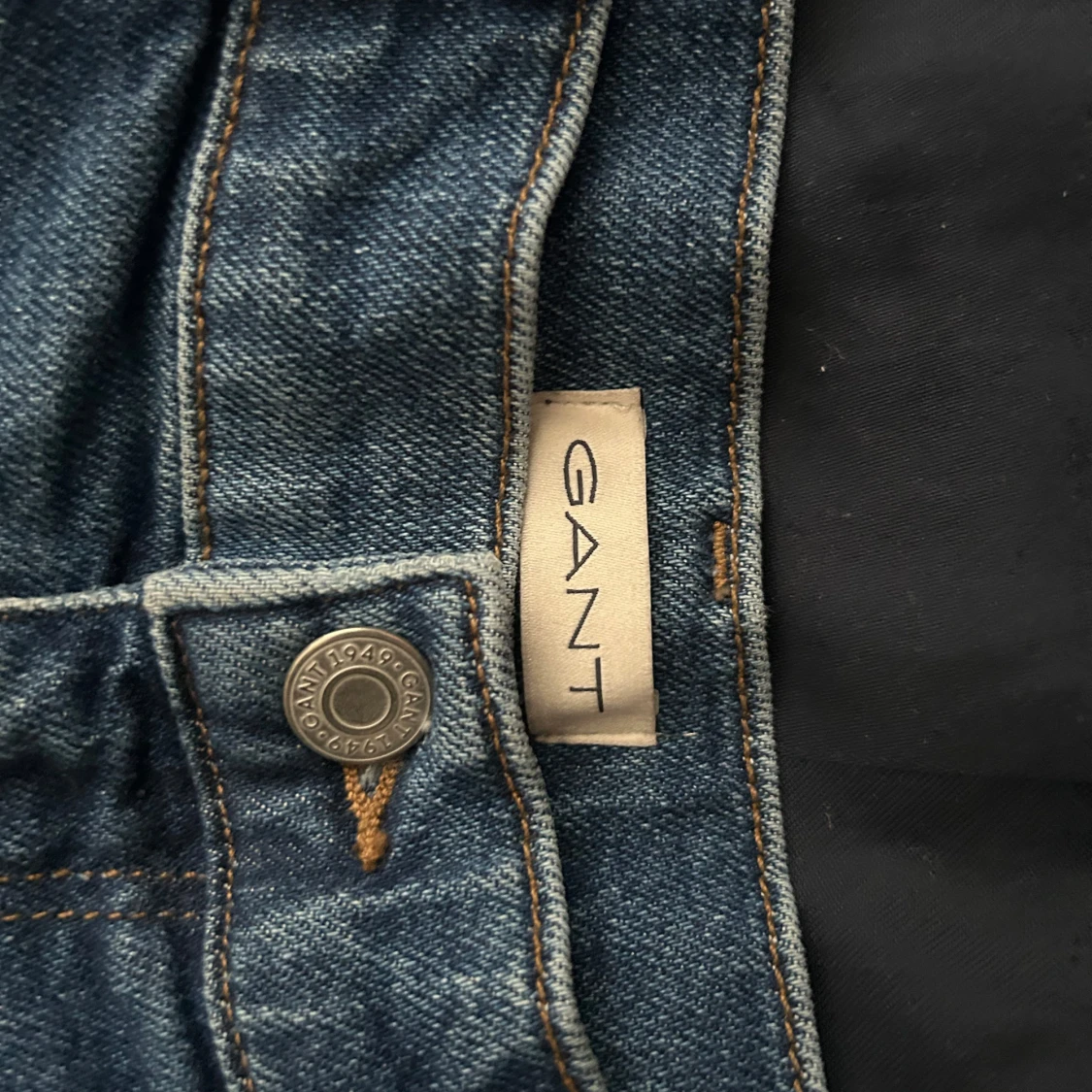 Sköna relaxed fit jeans blåa gant jeans, sitter bra, jag är strax under 170cm o de sitter bra men ksk lite för långa vilket e bra om man är lite över 170, har bara blivit använda 3 ggr, tagg inkluderad