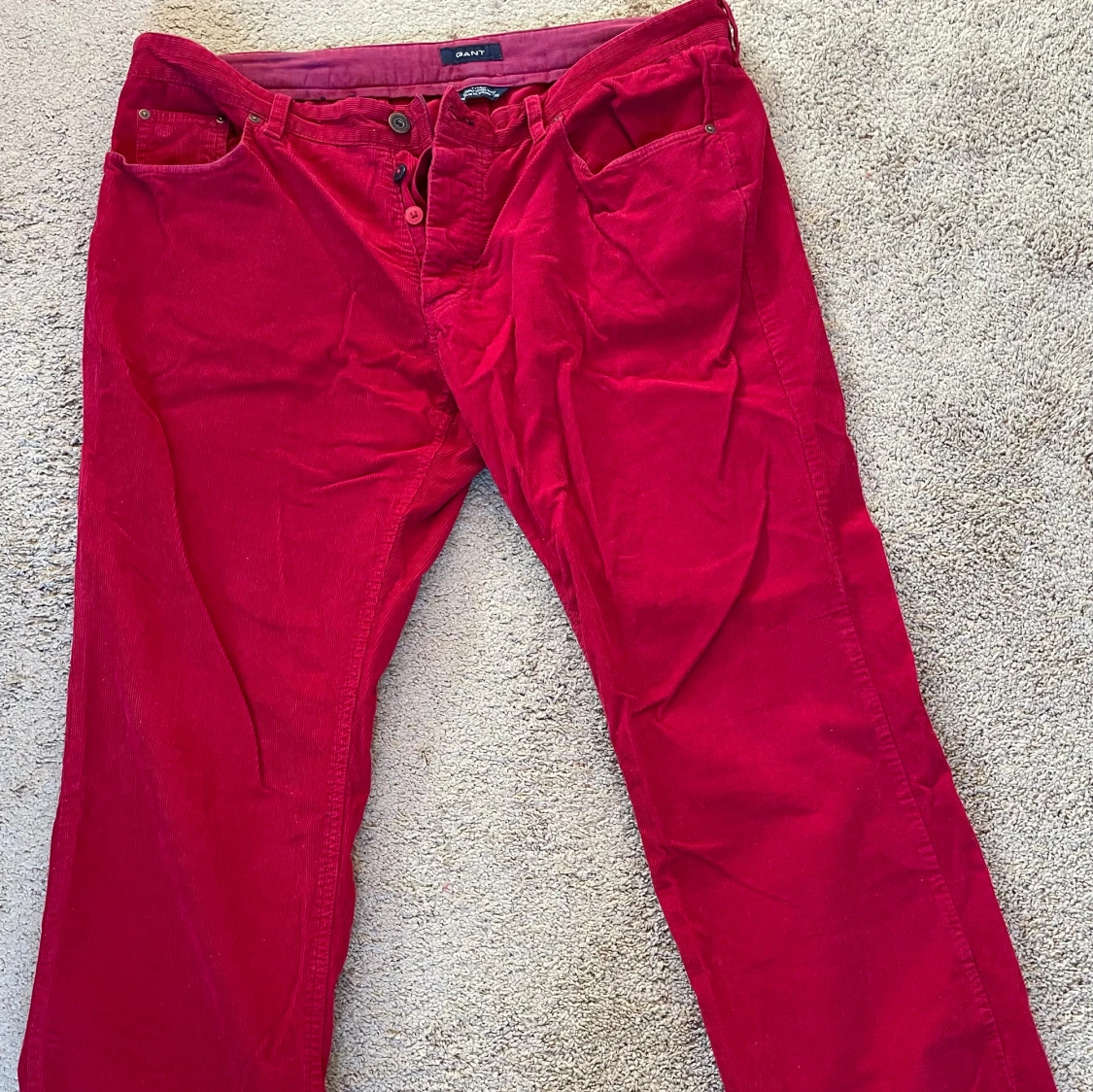 Snygga röda manchesterbyxor från Gant i klassisk rak modell. Byxorna har fem fickor, bälteshällor och stängs med knappar. Materialet är mjukt och ger en cool retrovibe. Perfekta för dig som vill sticka ut med färg och stil. Obs! kan skickas först kring den 19/11.