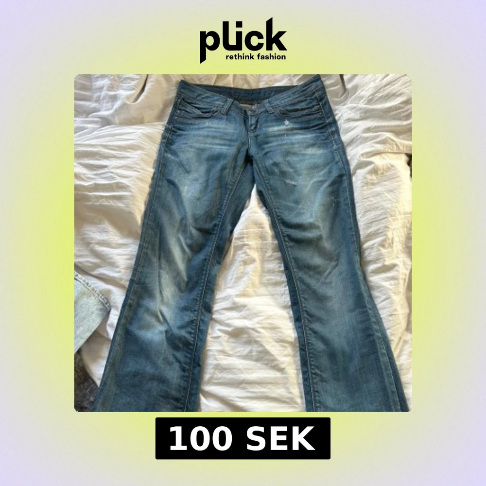 Snygga blå jeans från ONLY med en klassisk femficksdesign och lätt slitna detaljer. De har en bekväm passform och är perfekta för en avslappnad stil. Jeansen har en knapp och dragkedja framtill. Lite slitning på ena benet längst ner. Se bild