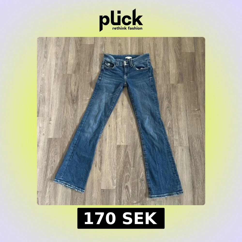 så fina mörkblåa lågmidjade bootcutjeans från gina. stl 164 men passar mig som brukar ha xs💕 fint skick