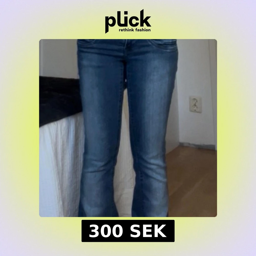 Säljer ett par blå lågmidjade jeans från Gina Tricot i storlek S. Materialet är stretchigt denim. Mycket bra skick inga defekter!