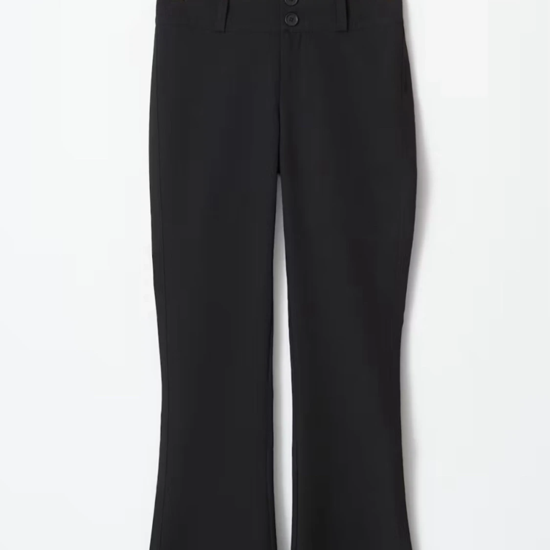 Svarta kostymbyxor med bootcut-snitt och klassisk design från gina tricout. bälteshällor och stängs med två knappar framtill. Perfekta för en clean och stilren look.