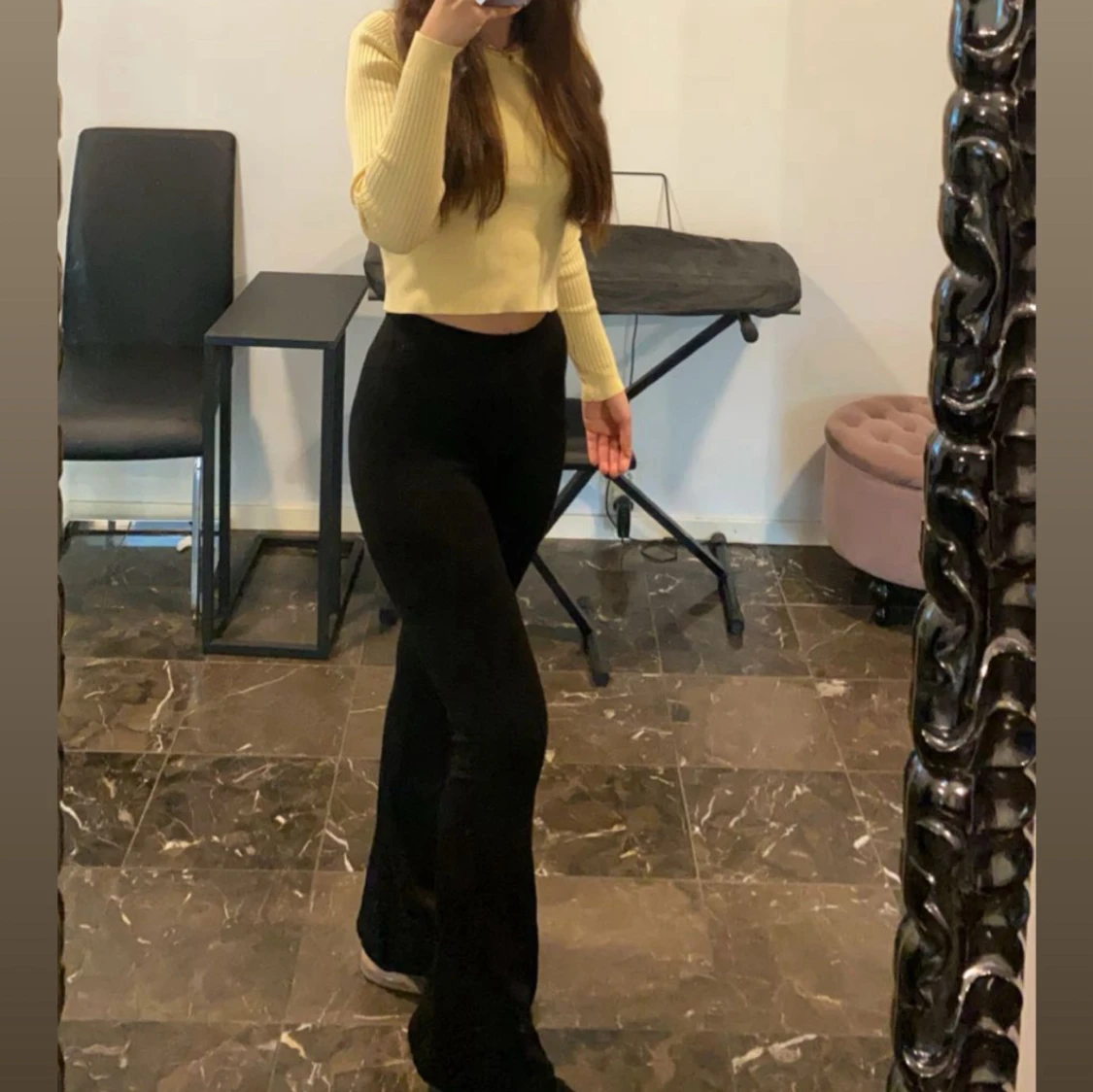 Svarta bootcut byxor från Gina Tricot i stretchigt material. Sitter tajt över låren och släpper ut vid vaden för en snygg siluett. Perfekta till crop tops eller stickade tröjor. Supersköna och trendiga byxor i klassisk svart färg.
