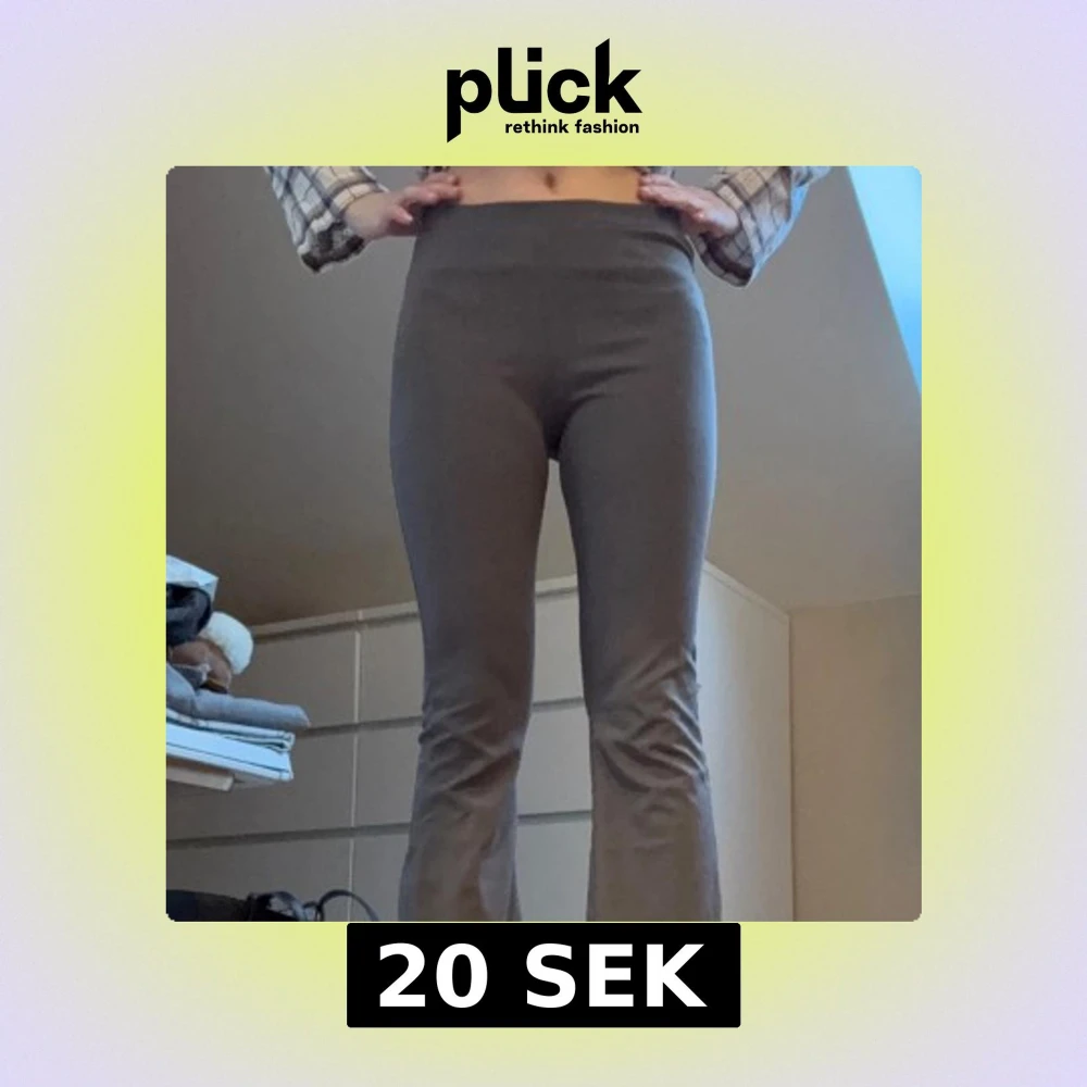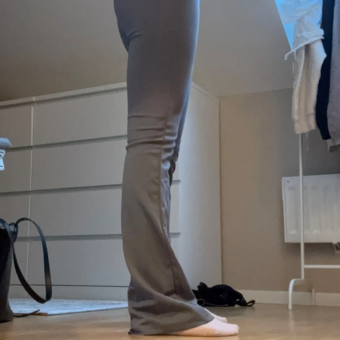 Säljer ett par grå bootcut byxor med hög midja. Perfekta att styla med crop top eller skjorta.