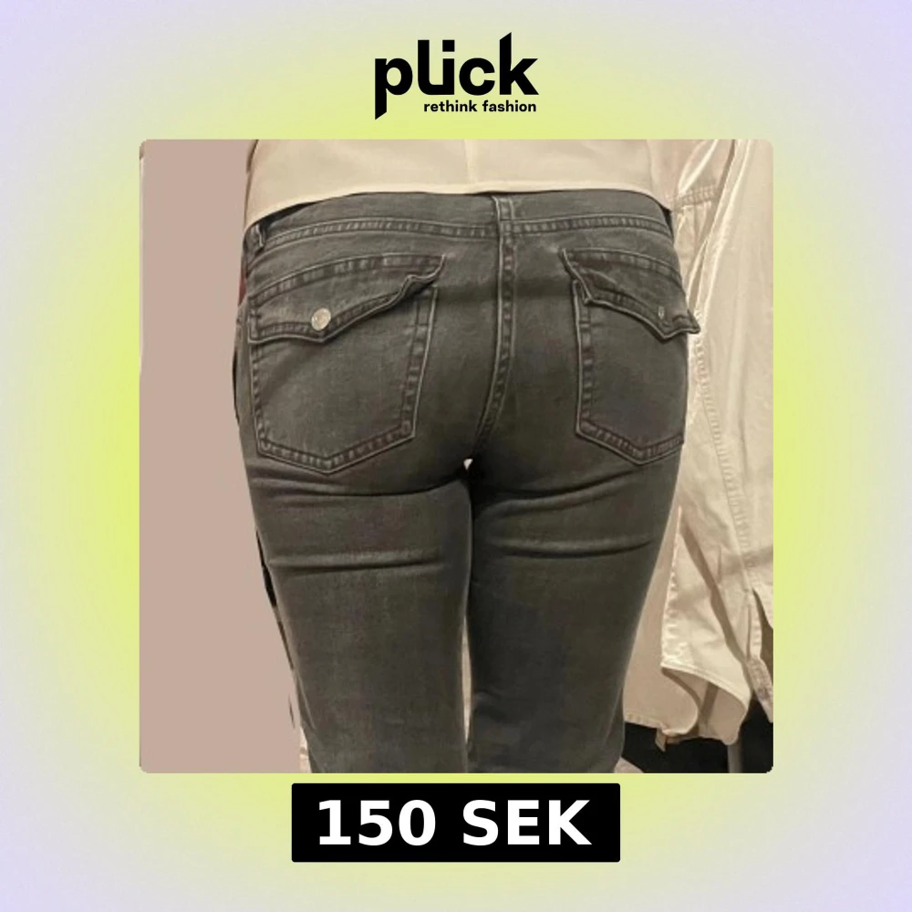 Snygga grå bootcut jeans från 157 med låg midja och tight passform. De har klassiska femficksdetaljer och en stilren design som passar perfekt till vardags som fest. Perfekta för dig som gillar en modern look. Strl S - short length