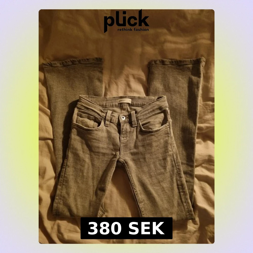 Snygga grå jeans från ginatricot med bootcut-ben och ultra låg midja. Klassisk femficksdesign och coola detaljer på bakfickorna. Jeansen är tillverkade i mjukt jeansmaterial och passar dig som gillar en avslappnad och trendig stil. Paddat mig som vanligtvis är storlek 36. Använd en gång