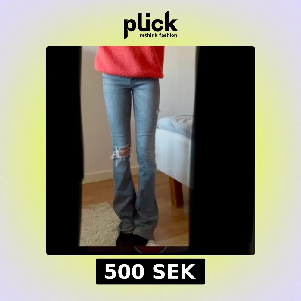 Snygga grå bootcut jeans med slitningar på knäna. Storlek 24/32. Supercoola och passar super snyggt till, till exempel stickade tröja mm. Intressekoll därför går det inte att köpa direkt, om många är intresserade kommer jag lägga ut en ny annons där det går att köpa direkt😊