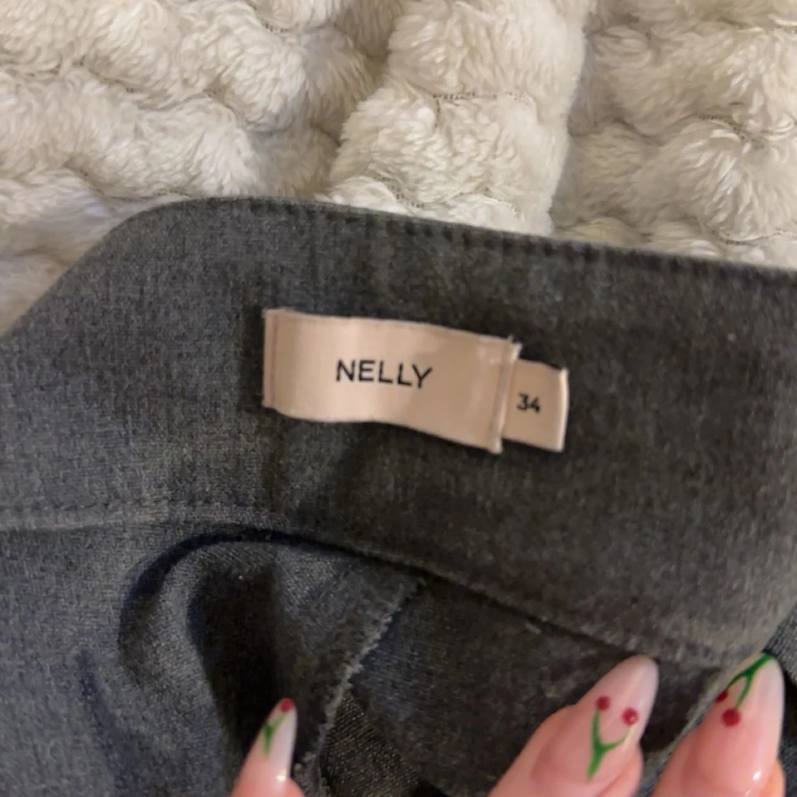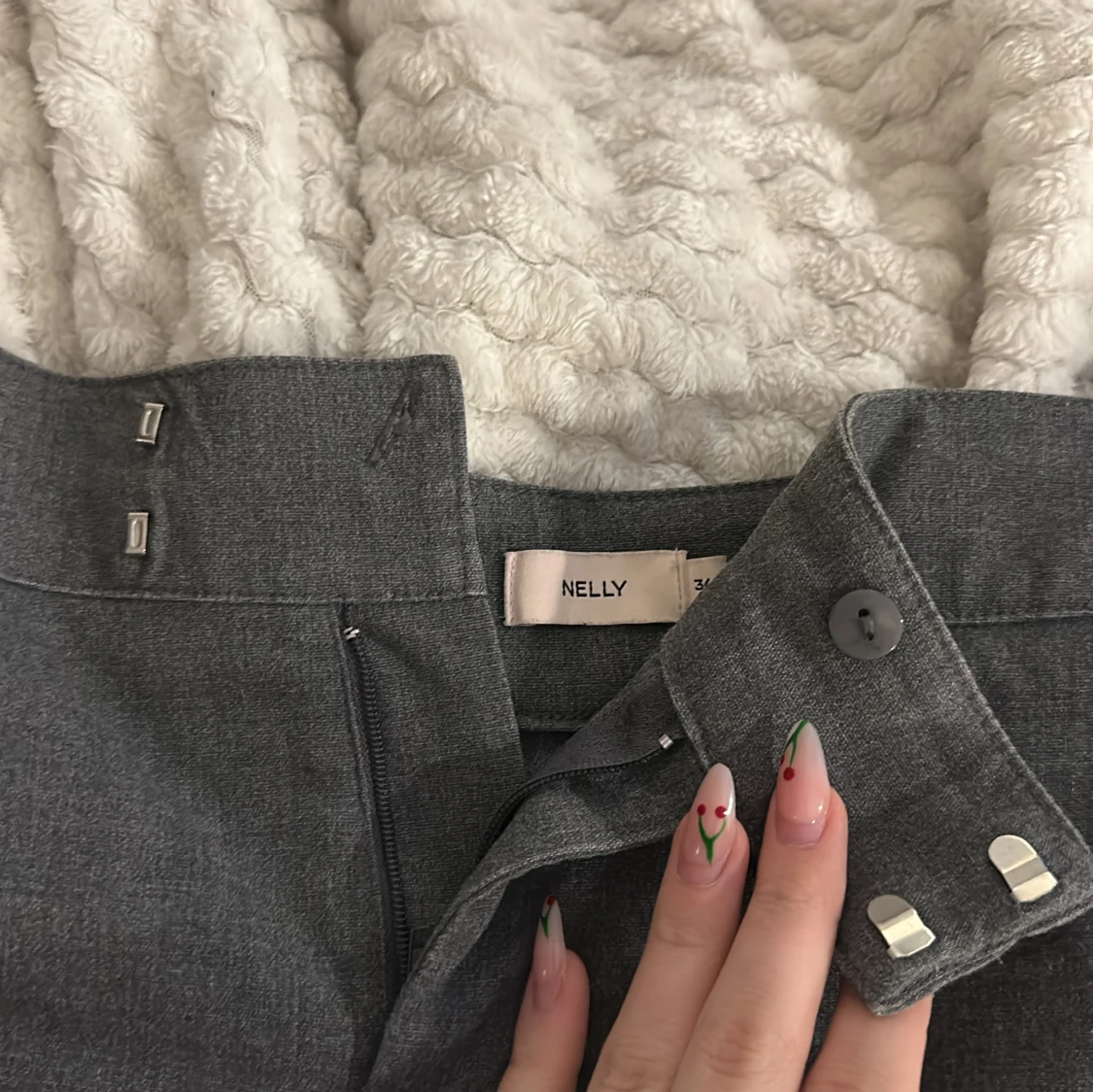 Snygga grå byxor från Nelly med en stilren design. Byxorna har en dragkedja och knapp framtill för enkel stängning. Perfekta för en chic och modern look. Använd fåtal gånger