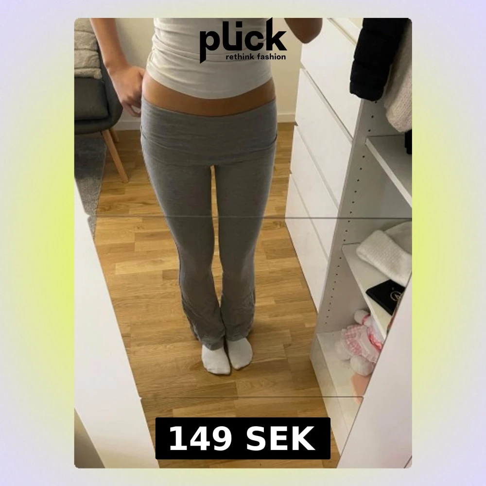 Säljer ett par grå mjukisbyxor med låg midja och tight passform. Materialet är mjukt och stretchigt. 💕Skriv för frågor och kolla min profil för annat snyggt