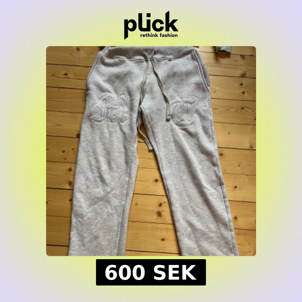 Snygga grå mjukisbyxor med broderade bokstäver på framsidan och dragsko i midjan. Perfekta för chill dagar eller när du vill vara bekväm men ändå se cool ut. Mjukt material och avslappnad passform.