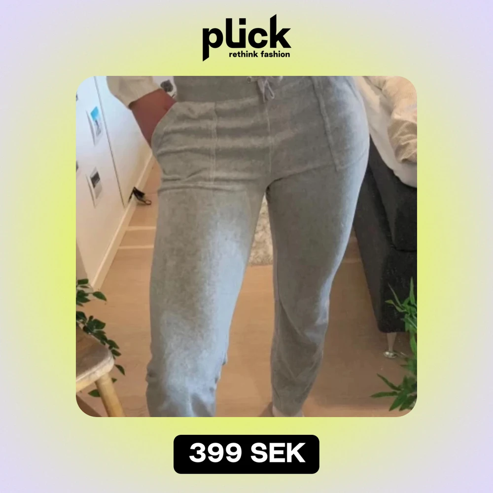 Säljer ett par superbekväma grå Juicy Couture byxor. Byxorna har snörning i midjan och praktiska fickor på sidorna. Materialet är mjukt och skönt velur, vilket gör dem till ett måste i garderoben!