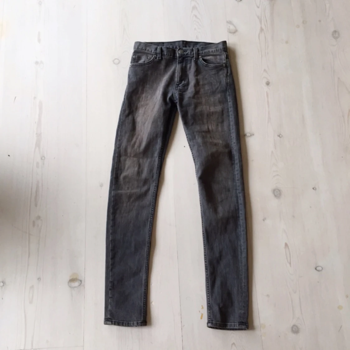Mörkgrå jeans med smala ben och normalhög midja. Från Weekday MTWTFSS. Passar till det mesta. Storlek W26 L32.