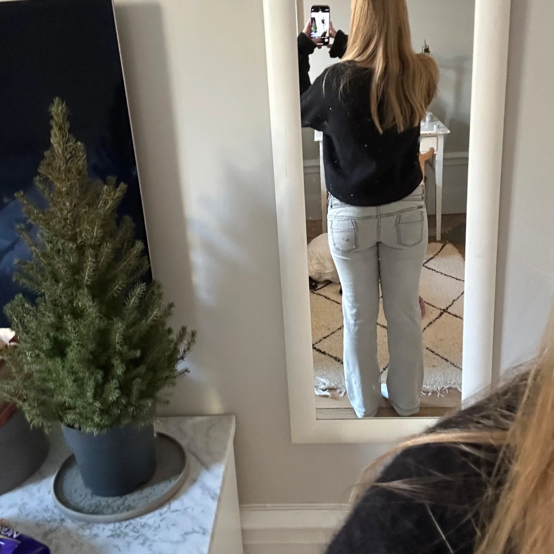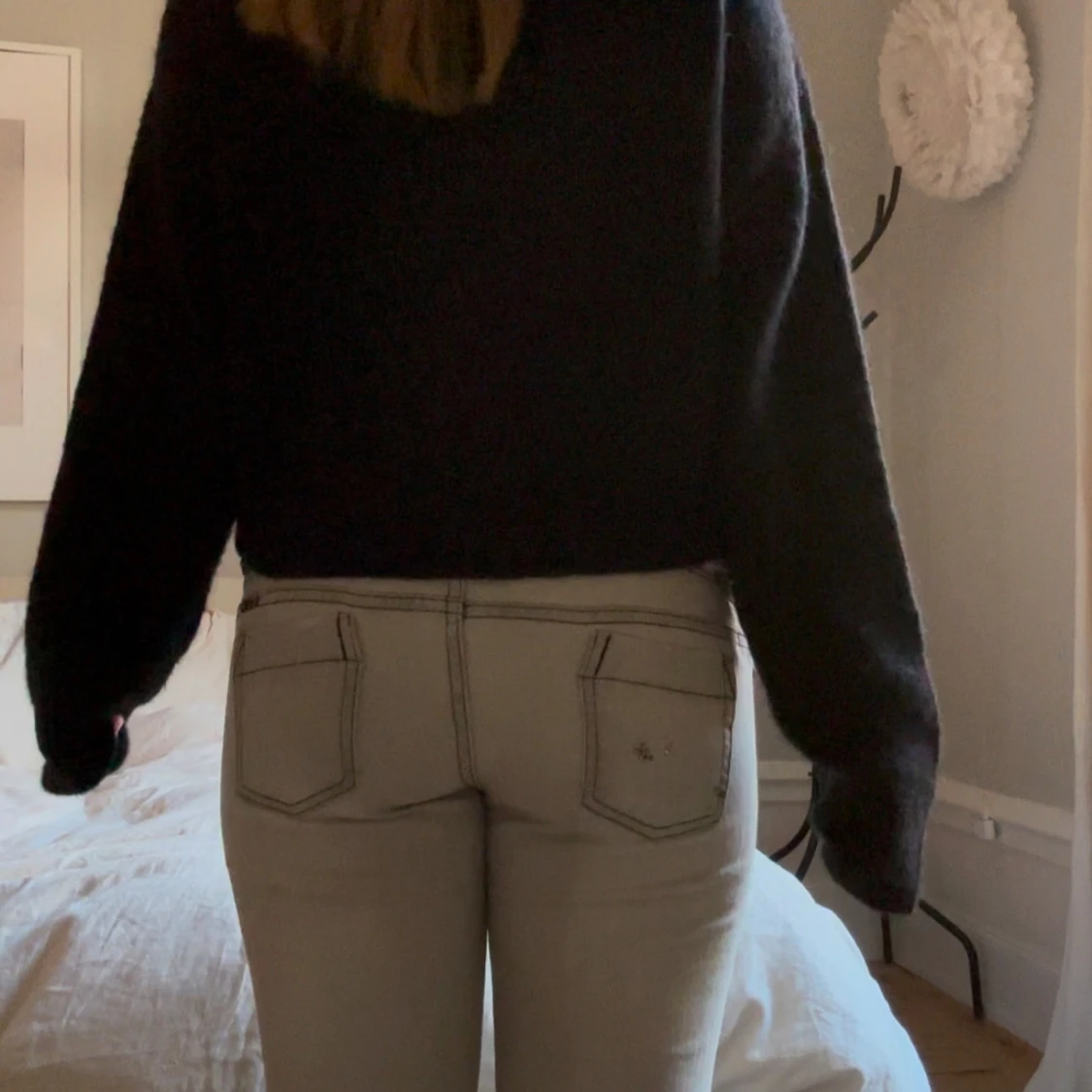 Gråa lågmidjade bootcut jeans som är superfina men som jag tyvärr behöver sälja då jag behöver pengar💗 innerbens längd 77cm och midjemått 37cm