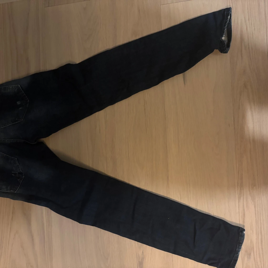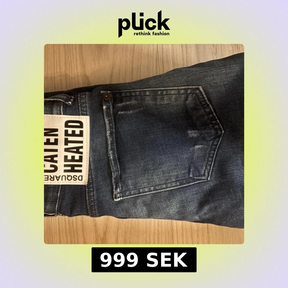 Snygga blå jeans från Dsquared2 med coola slitningar och tvättade detaljer. Modellen är skinny fit med klassiska fem fickor och stor vit patch med Dsquared2-logga bak. Jeansen har en mörkblå bas med ljusare partier och distressed look.