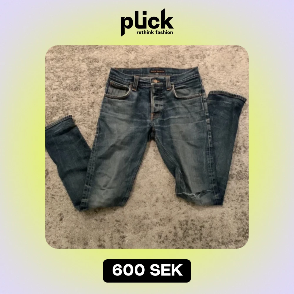 Säljer ett par blåa Nudie jeans. Jeansen är i 31/32 och har slim passform. Defekter vid fickan.