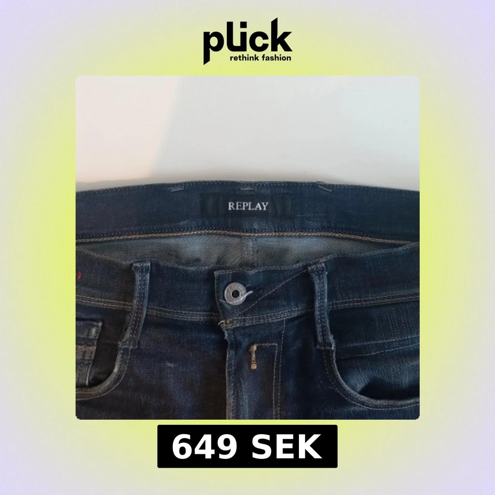 Snygga mörkblå jeans från Replay med klassisk femficksdesign och knappgylf. Perfekta för en avslappnad stil. Märkesdetaljer syns på fickan och baksidan.