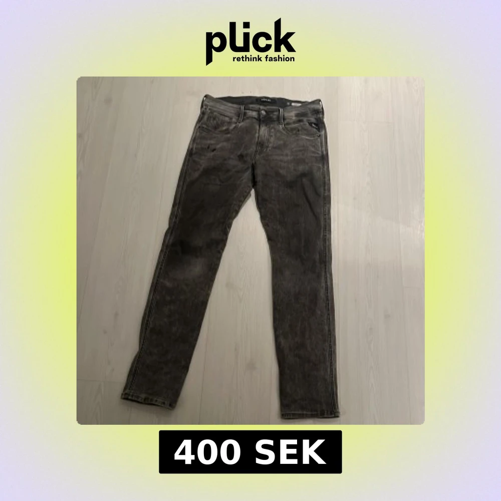 Snygga Replay Anbass jeans i tvättad grå färg med klassisk femficksdesign och raka ben. Jeansen har en normal passform och är tillverkade i mjukt jeanstyg med diskreta slitningar för en cool look. Perfekt för dig som gillar streetstyle.Man ser att det är två små hål på bilden men jag tycker att man inte tänker så mycket på det. Skriv för mer information.