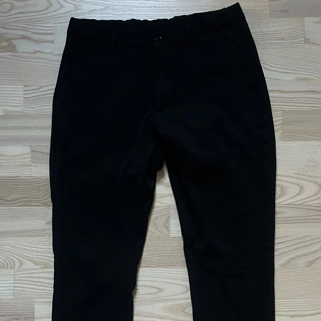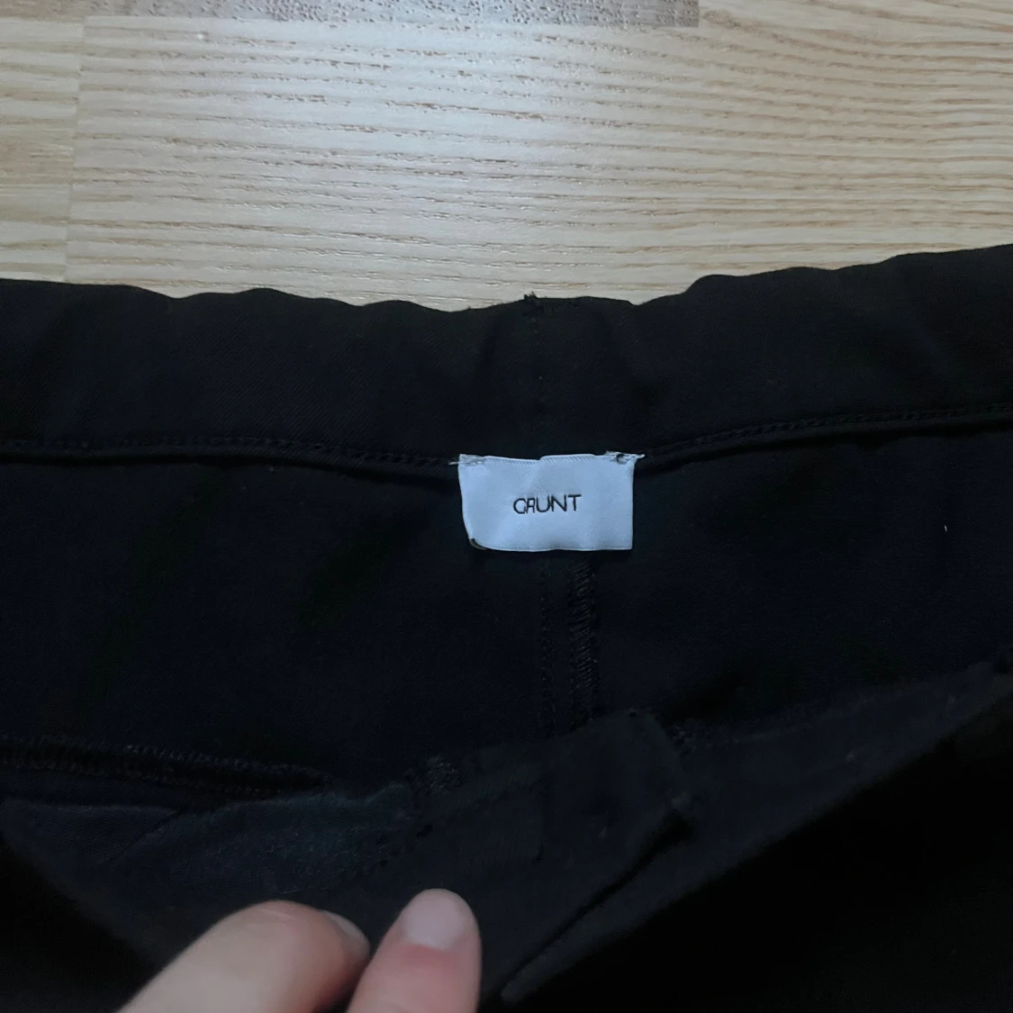 Stilrena svarta kostymbyxor från Grunt med klassisk rak passform och hällor för bälte. Perfekta till en snygg skjorta eller stickad tröja. Byxorna har diskreta sidfickor och stängs med knapp och dragkedja.