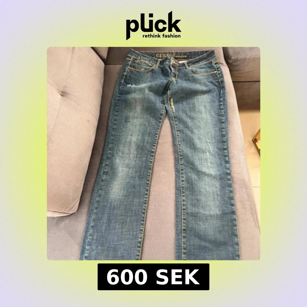 Säljer ett par klassiska blå jeans från Guess. De har en straight passform med snygga slitningar och kontrastsömmar. Perfekta för en avslappnad stil. Storlek 32. 40cm tvärsöver. Pris går att diskuteras!🩷