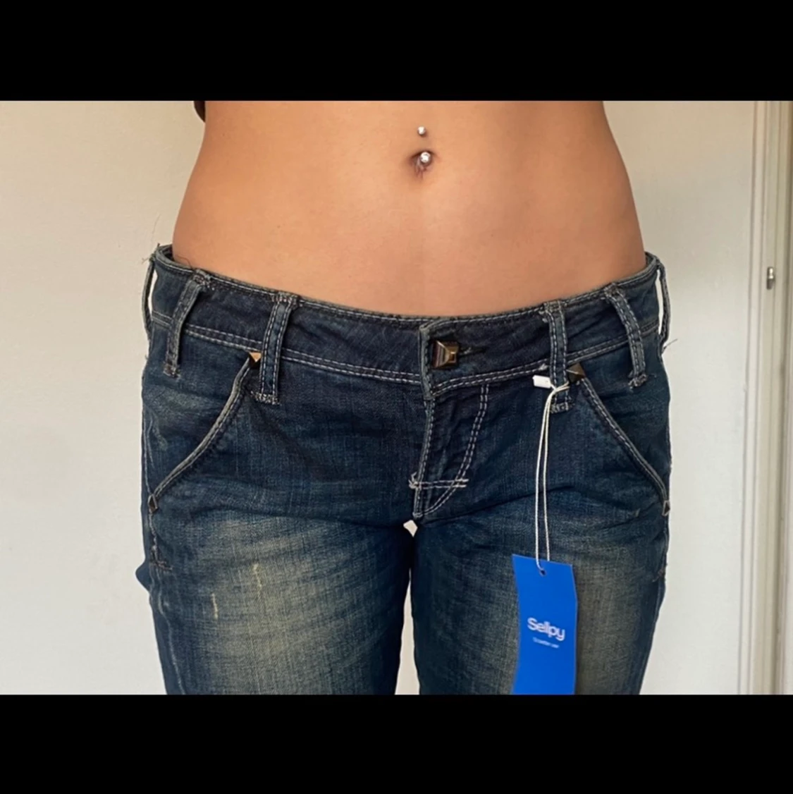 Skit snygga lågmidjade jeans från guess med coola detaljer på fickorna🔥 köpte dom på sellpy för ca 2 månader sedan men har aldrig använt, lappen sitter till och med kvar! Kan mötas i Stockholm annars står köparen för frakten🔥