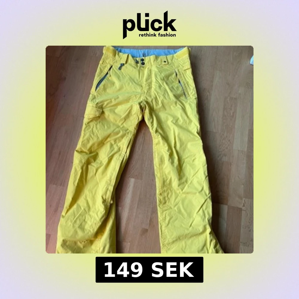 Säljer ett par gula täckbyxor från 686. Byxorna har flera praktiska fickor med dragkedja och bälteshällor. Perfekta för vintersport med sitt tåliga material och stilrena design. Passar bra för kalla dagar i backen.