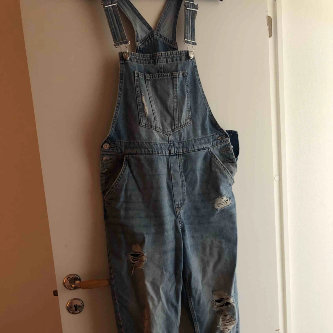 Hängselbyxor med lite slitningar, använda fåtal gånger