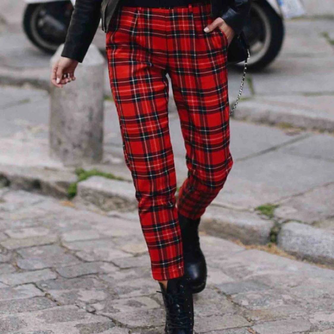 byxor från h&m, lika bilden. Skriv privat för fler bilder storlek 40 men insydda i midjan så de är smalare där frakten är 54kr, totalt 134kr 🖤