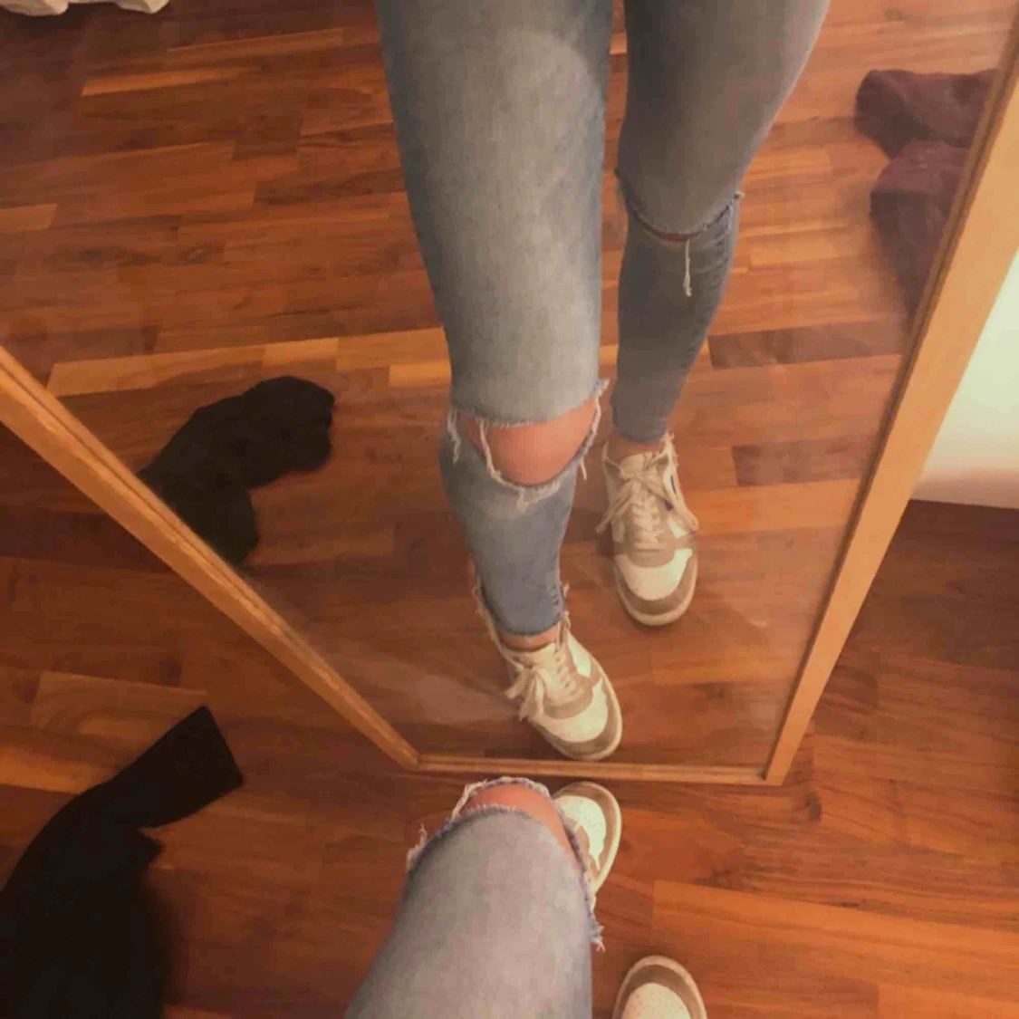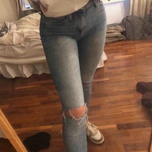 Skinny jeans från h&m, egenklippta hål på knäna, slitningar längts ner och på ena bakfickan!💕