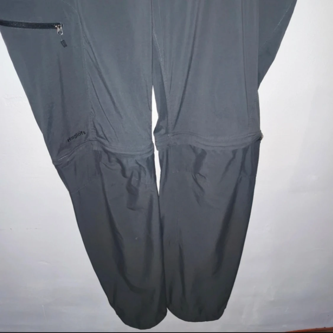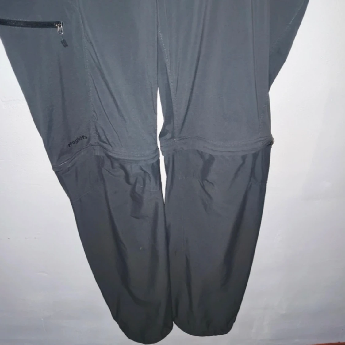 Svarta friluftsbyxor från Haglöfs med zip-off-funktion så du kan göra om dem till shorts. Byxorna har dragkedja vid knäna, flera fickor inklusive en med dragkedja på sidan och bälteshällor. Perfekta för äventyr och outdoor.