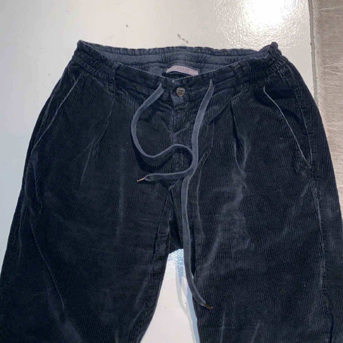 Mörkgrå/svarta Manchester chinos Made in Italy från Briglia. Nypris 1900 kr. Resår i midjan så man kan spännande åt extra om man önskar. Normal relax passform.