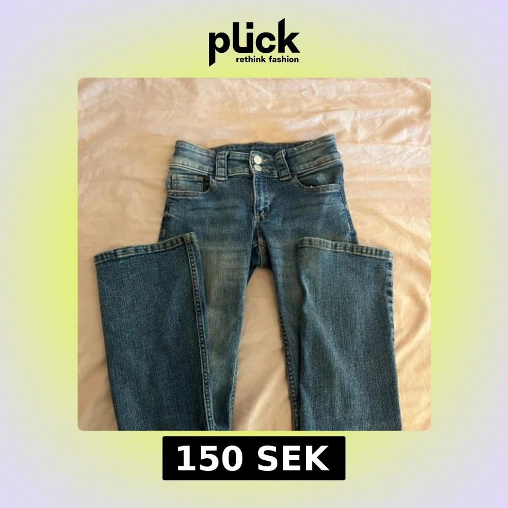 Säljer ett par blåa bootcut jeans från Hm i storlek 146! De är i ett bra skick och är superfina. Pris kan diskuteras
