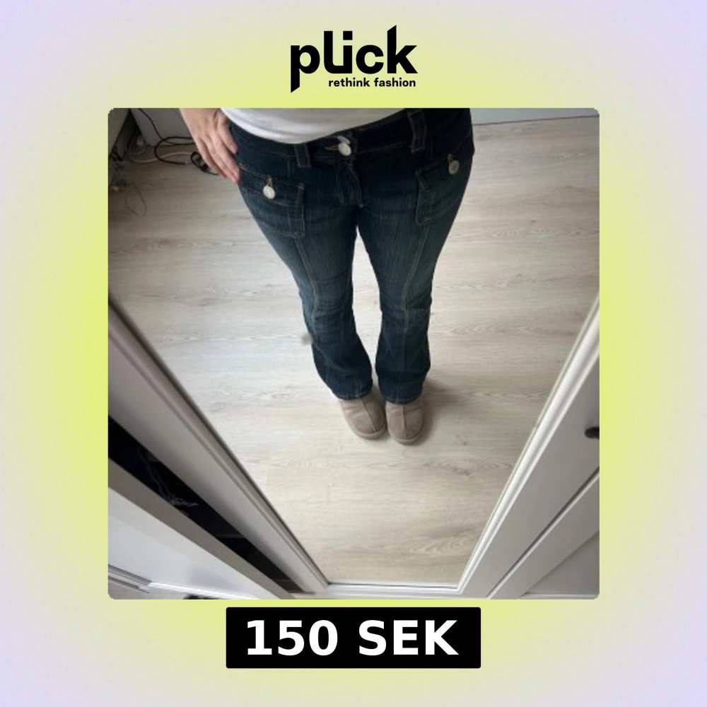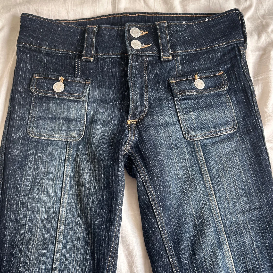 Mörkblå bootcut jeans med fickor