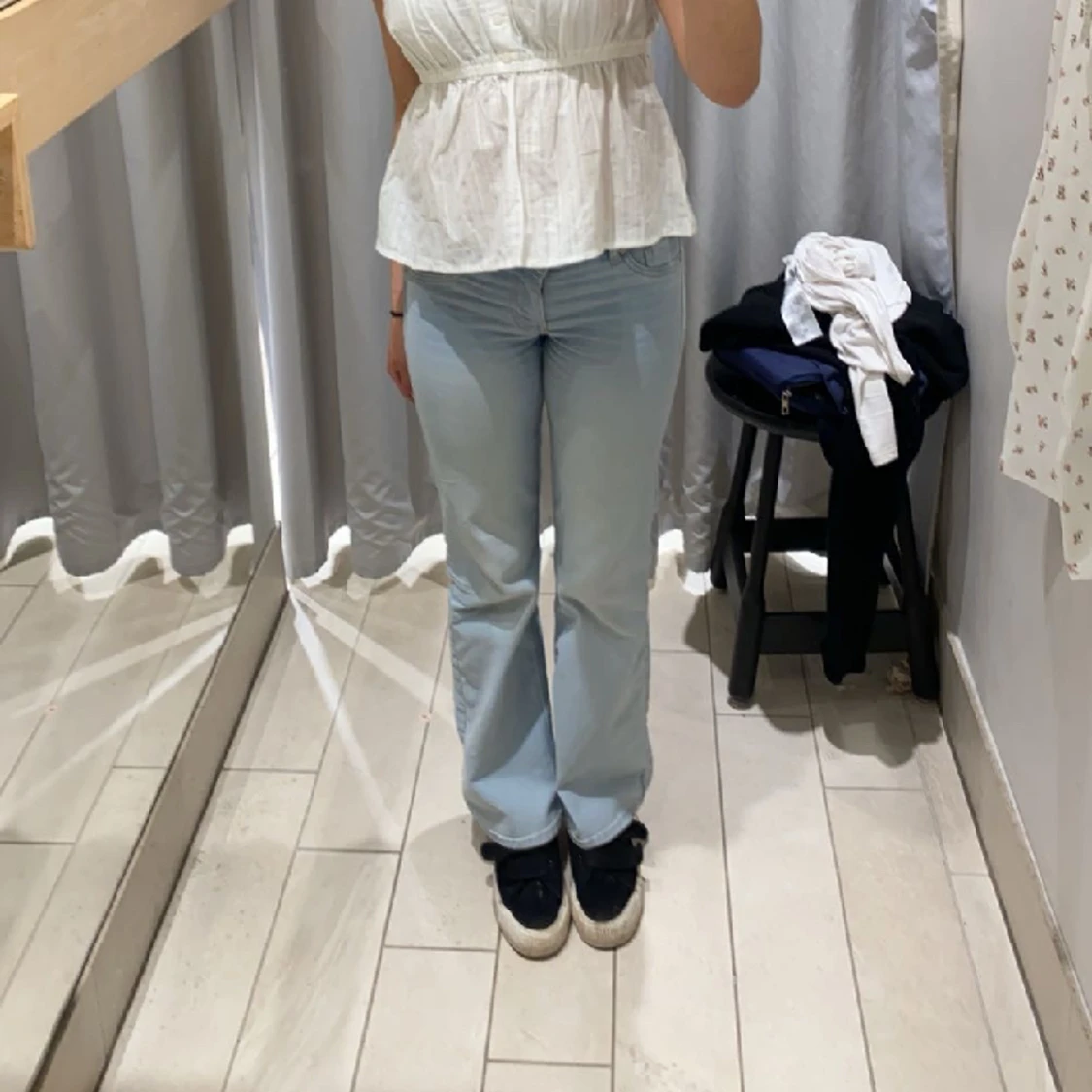 Lågmidjade jenas från HM, ljusblå tvätt. Storlek 34 och passar mig som är 161 cm! Köp direkt för 350❤️