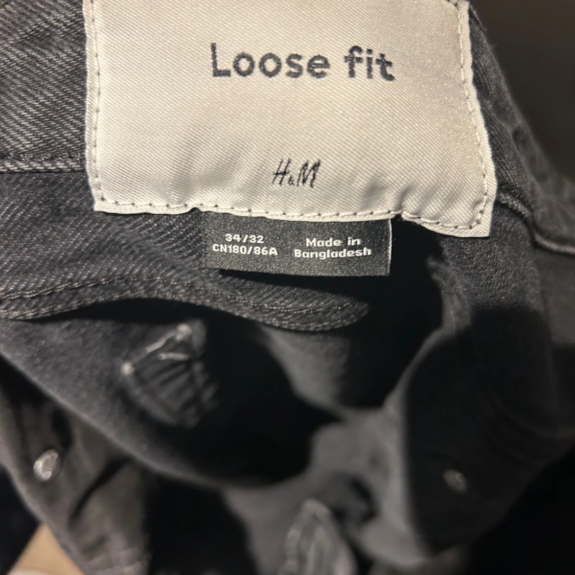 Säljer ett par svarta loose fit jeans från H&M i storlek 34/32.