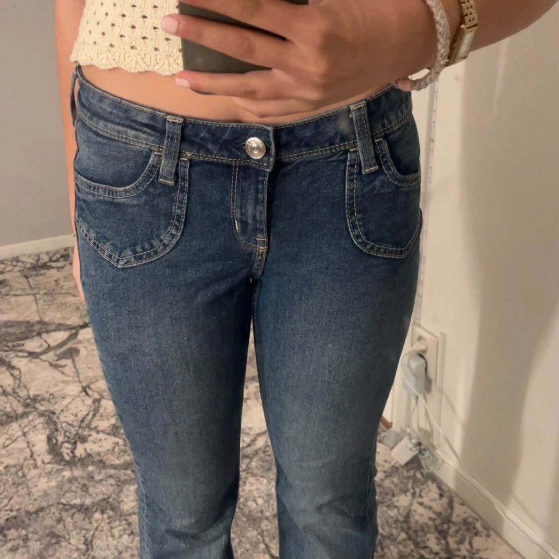 Söta lågmidjade jeans med söta fickor :) lite slitningar längst ner vid benen😗