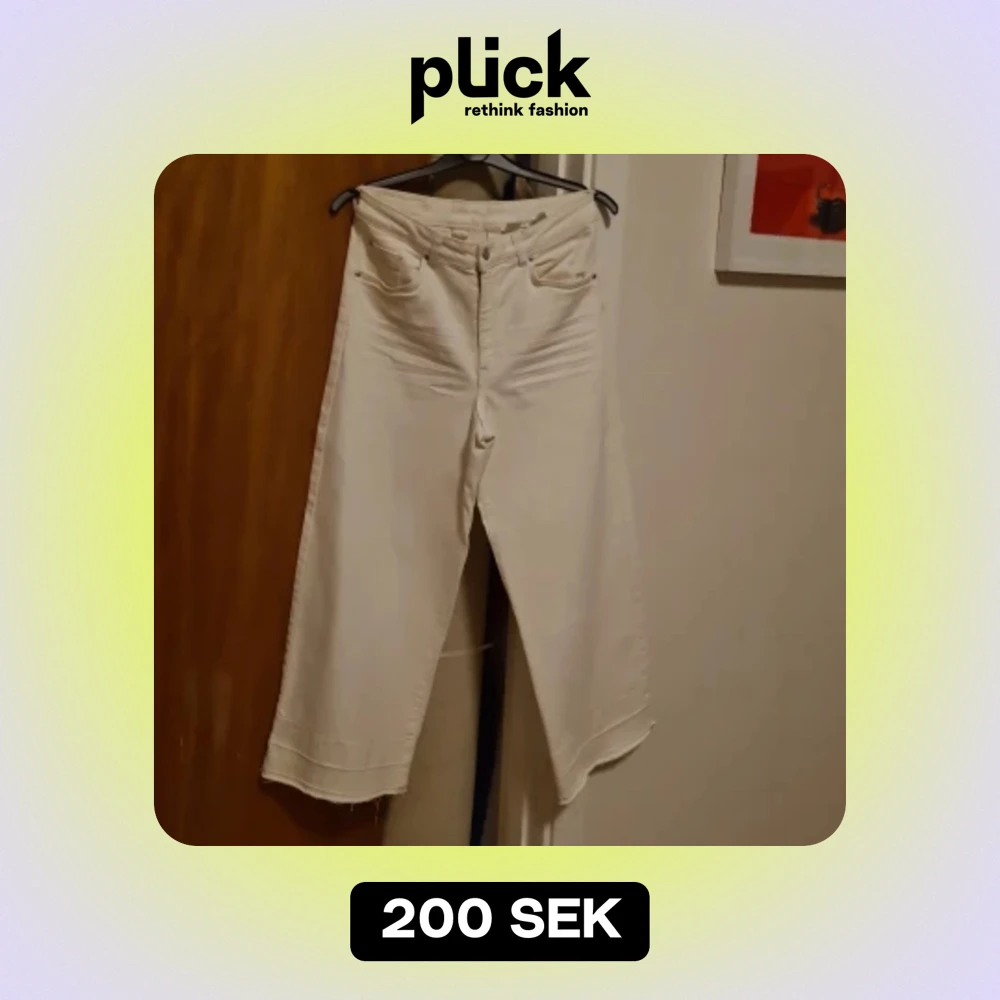 Benvita jeans med breda ben, hög midja, storlek 38-40, Innerbenlängd 67 cm, midja 79 cm. Använda 2 gånger.