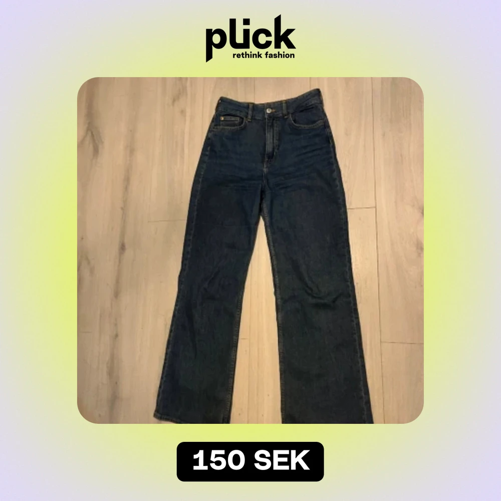 Säljer dessa mörk blåa jeans som går högt i midjan. Dem sitter jättefint på kroppen och är i storleken 38🤍