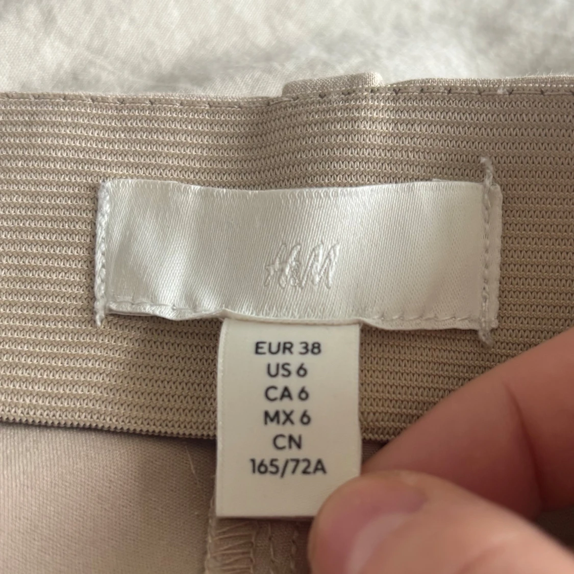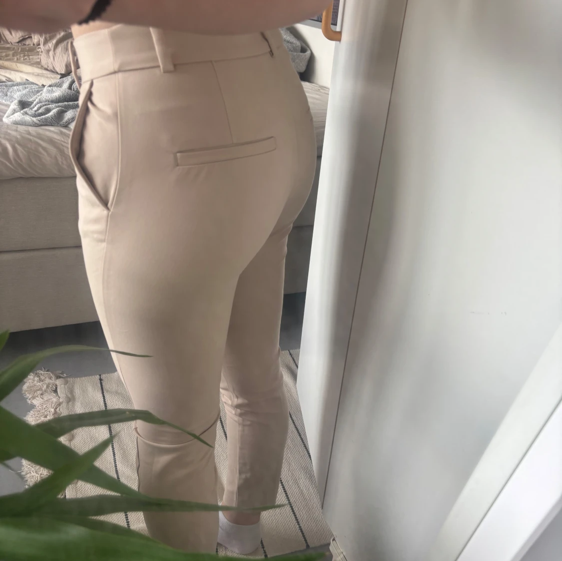 Säljer ett par beiga kostymbyxor från H&M (en äldre modell). Byxorna har tight passform och hög midja. De har resor i midjan, vilket gör att de passar de flesta. Säljer på grund av att de aldrig använts. Priset går att diskuteras vid snabb affär 💌