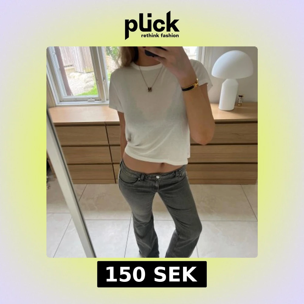 Säljer ett par grå jeans med snygg bootcut passform och låg midja. Jeansen har klassisk femficksdesign, dragkedja och knapp framtill. Materialet är jeans med en lätt tvättad look som ger en cool vibe. Perfekta för dig som gillar en avslappnad men trendig stil. Aldrig använda!❤️