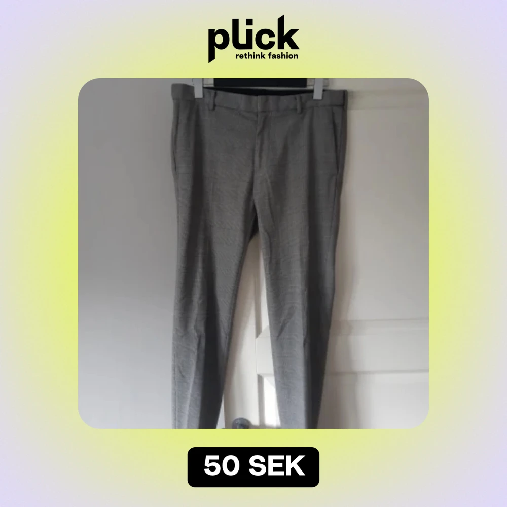Säljer ett par stiliga grå kostymbyxor från H&M i storlek 32. Byxorna har ett klassiskt rutmönster och en skinny fit som ger en modern look. Perfekta för både kontoret och festligare tillfällen. Endast använda 2-3 gånger och redo för en ny ägare!