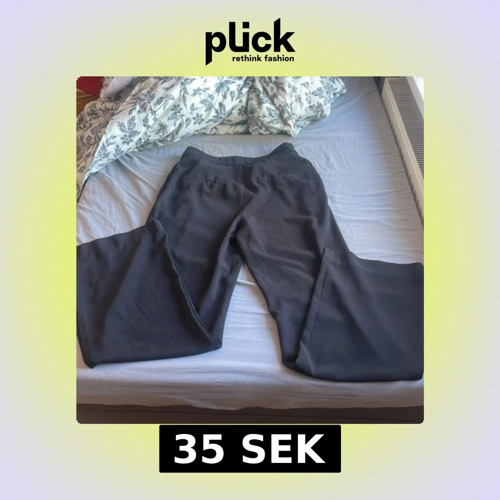 Säljer ett par svarta kostymbyxor från H&M i storlek 36. Byxorna har normal passform med raka, vida ben och klassisk midja. Perfekta till en stilren look och passar till många olika tillfällen.