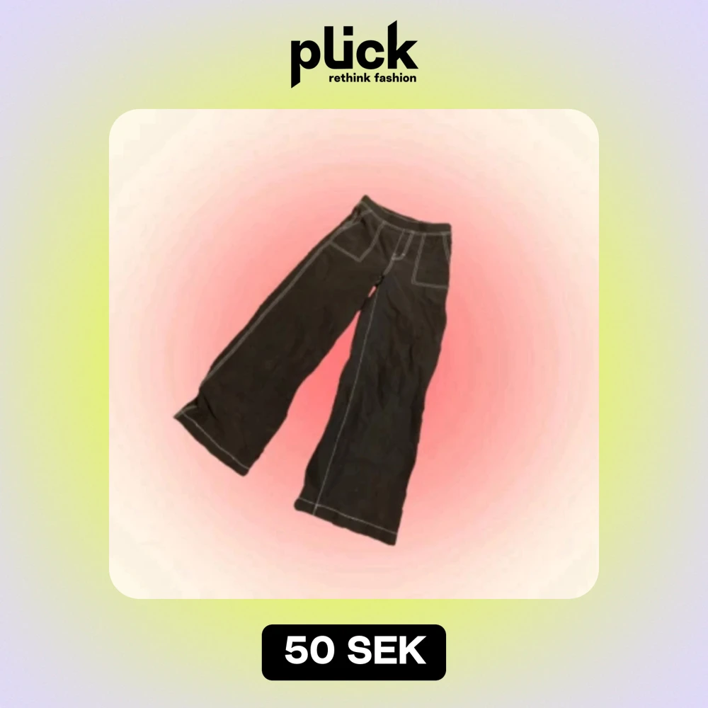 Svarta byxor med vit söm, finns tecken på användning men går fortfarande att använda dessa ett långt tag till