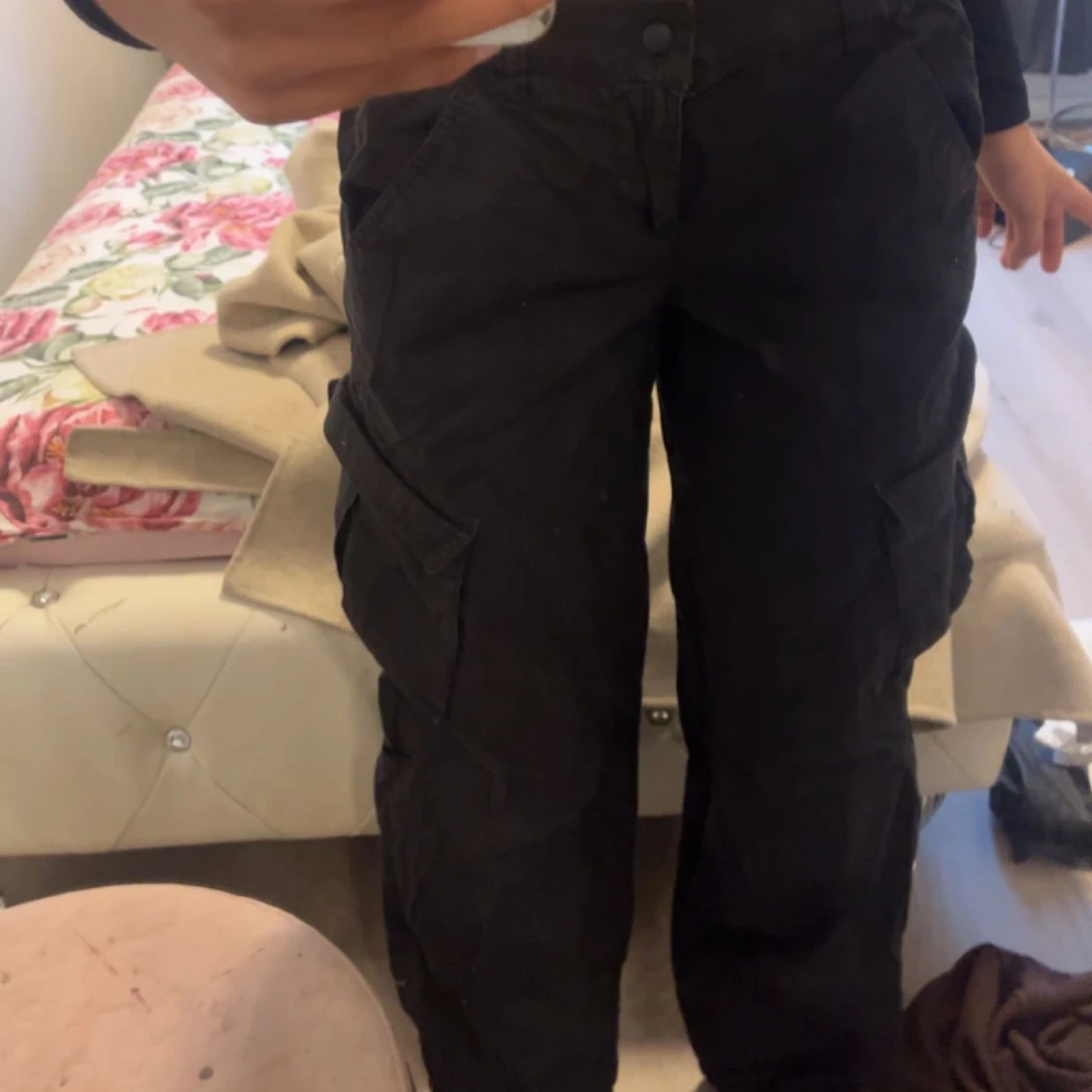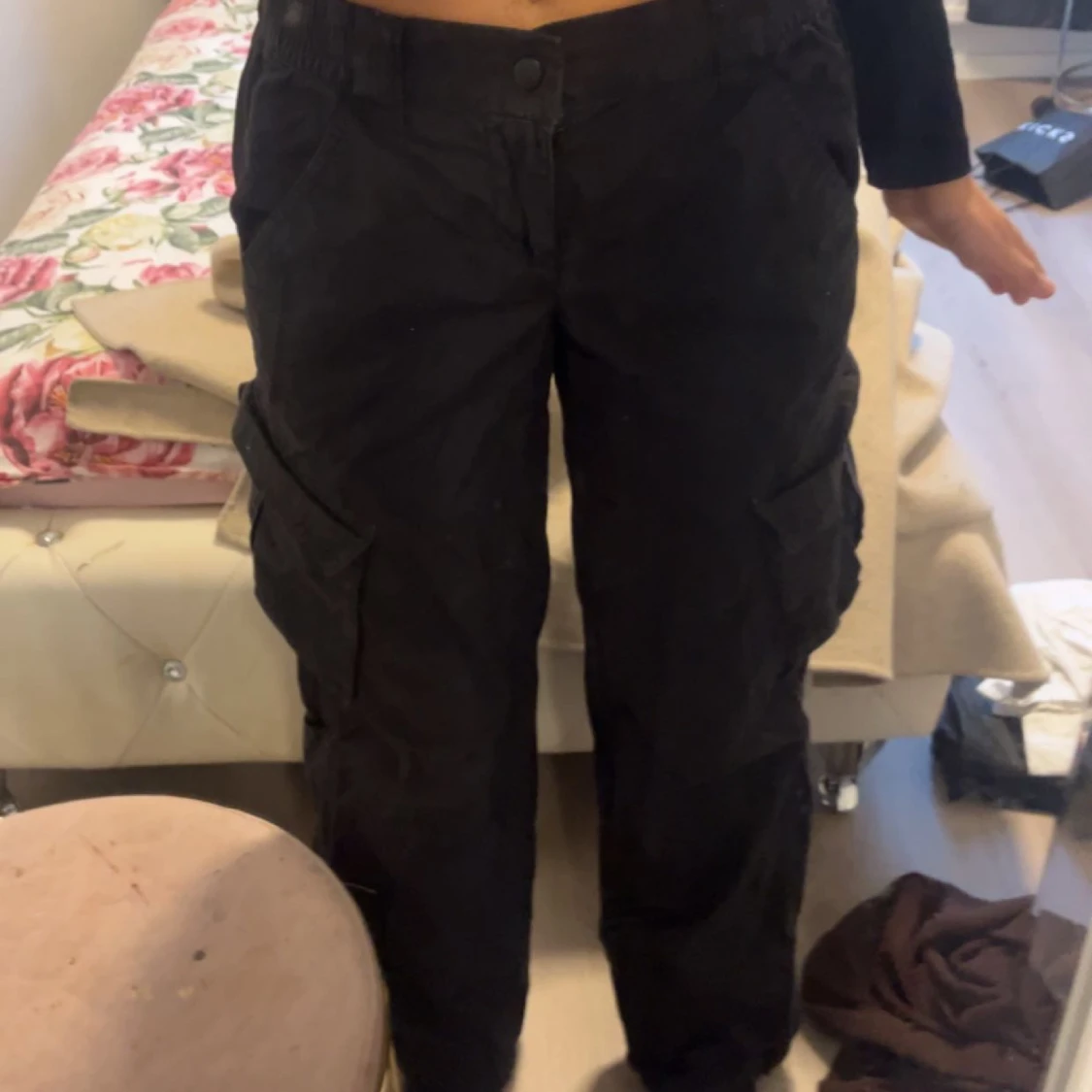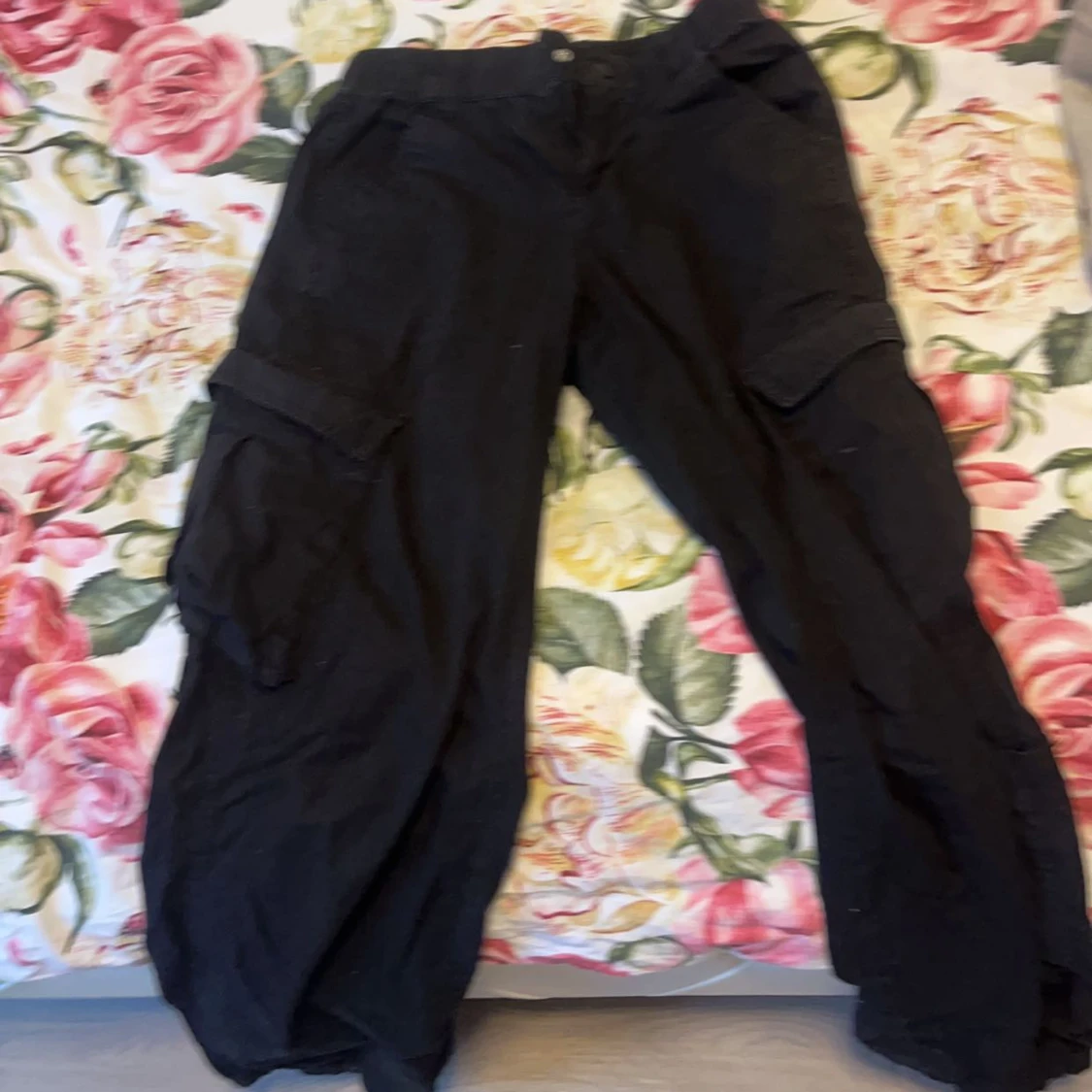 Säljer mina svarta cargo byxor i storlek xs men passar även s dem är strechiga