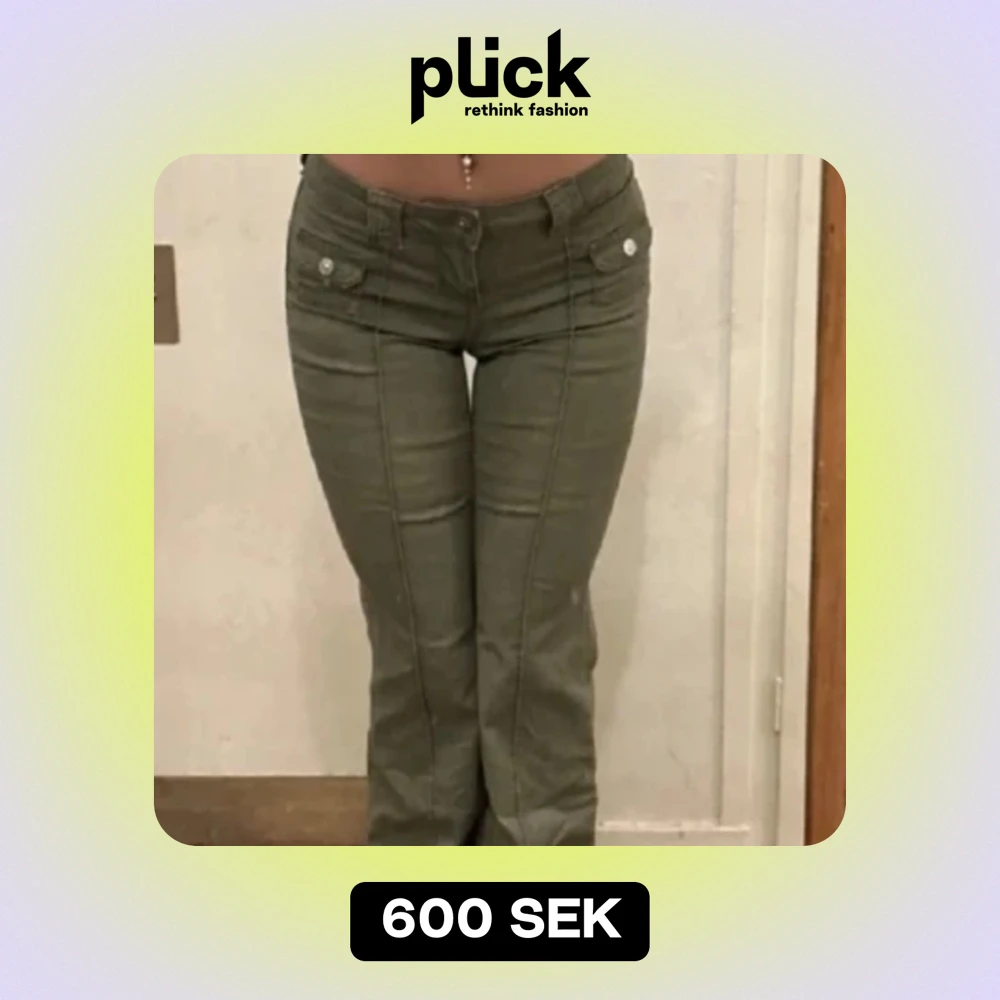 Lånade bilder* Lågmidjade jeans i khaki-grönt från HM,slutsålda. Helt nya med prislapp kvar, kan skicka egna bilder om intresse finns😊 Storlek 38 men skulle säga att de sitter mer som 34/36..