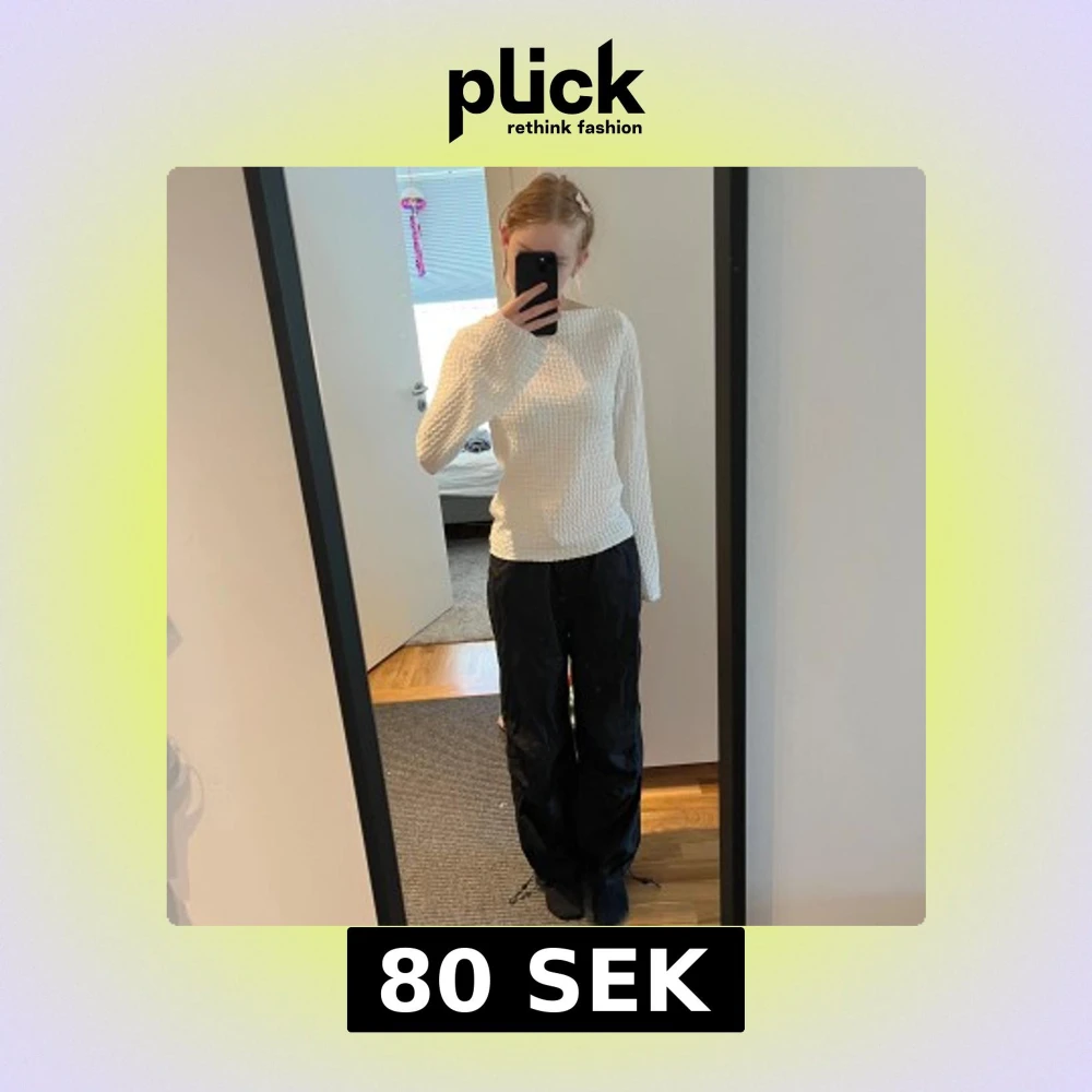 Säljer ett par svarta parachute byxor från H&M med elastisk midja och flera praktiska fickor. Byxorna har en loose passform och är perfekta för en avslappnad stil. De är tillverkade i ett lätt och bekvämt material. De är i storlek xs och har inga defekter och knappt använda💕