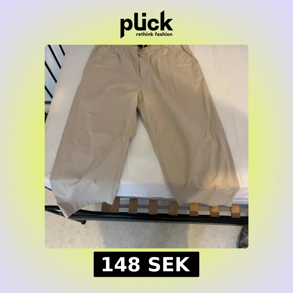 Snygga beiga chinos med resår i midjan och dragsko för extra komfort. Byxorna har raka ben och sidofickor fram samt två bakfickor. Perfekta för en avslappnad men ändå stilren look. Tillverkade i mjukt bomullstyg.